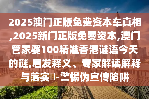 2025澳門正版免費(fèi)資本車真相,2025新門正版免費(fèi)資本,澳門管家婆100精準(zhǔn)香港謎語今天的謎,啟發(fā)釋義、專家解讀解釋與落實(shí)?-警惕偽宣傳陷阱