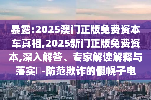 暴露:2025澳門正版免費資本車真相,2025新門正版免費資本,深入解答、專家解讀解釋與落實?-防范欺詐的假幌子電